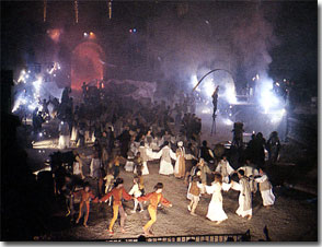 « on pense aux tableaux de Bruegel, aux foules grouillantes de Jérôme Bosh, l’un des plus beaux spectacles de l’été français » Le Monde « Ce spectacle est un défi à la création artistique à partir des techniques les plus sophistiquées » France Soir |