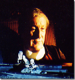 | Claude Moreau often uses cinema in his spectacles. Film clips are interactive with the drama and often feature actors of renown.They may support the narrative or be used in ways to évoque the setting or show the location in more detail. |