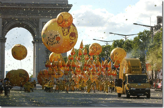 « La Parade du Centenaire du Tour de France » diffusée en Direct sur France 2 et sur de nombreuses Chaînes Internationales.